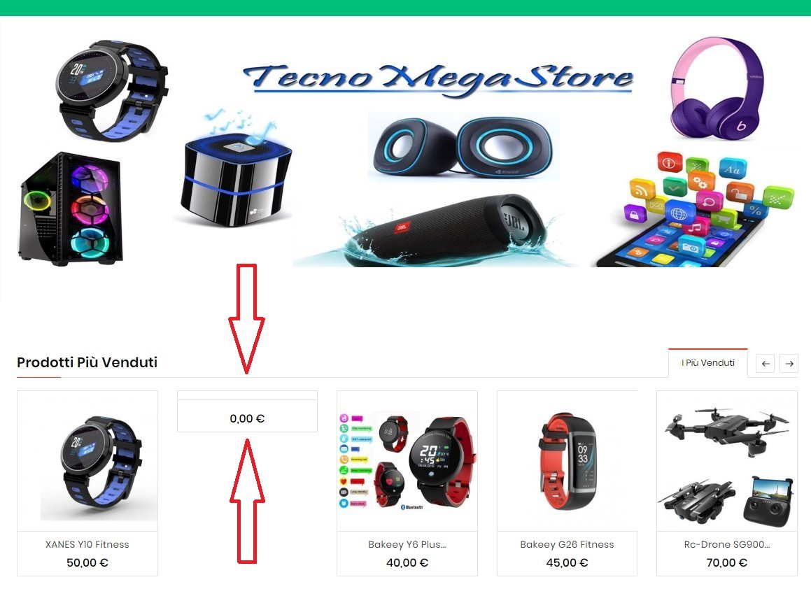 Michele Napoleone Posted December 14, 2018 Share Posted December 14, 2018 Cari amici... ieri sera dopo aver inserito un o dei tanti articoli in vendita nel mio sito e-commerce di Prestashop (attualmente in aggiornamento) è comparsa una un'immagine con 0.00€ che non so definire, ne tanto meno riesco a capire come si sia creata, sembra appartenere ad un articolo fantasma, ho fatto una foto del sito ve lo allego in basso, vi ringrazio come sempre per il vostro aiuto che, senza di esso molti problemi non sarei riuscito a risolvere. Attendo vostre illuminazioni,grazie Link to comment Share on other sites More sharing options...