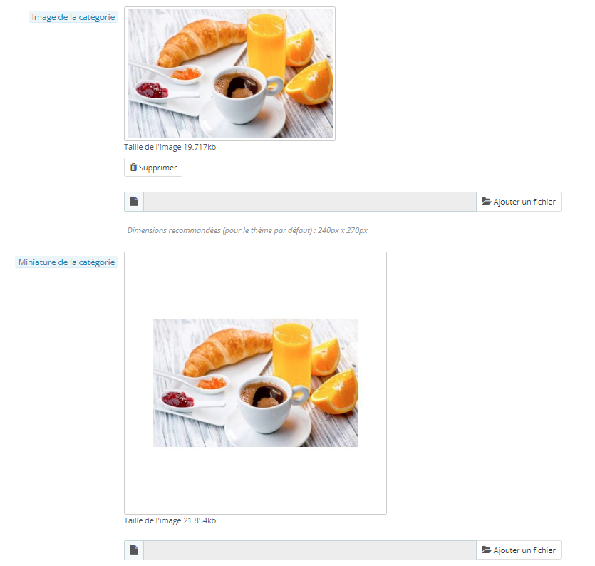 Aurelink_ Posted December 18, 2018 Share Posted December 18, 2018 (edited) Hi guys ! On prestashop 1.7 I'm calling on my menu the category's images and the category's thumbnails and they are 2 differents images. I set first my category's image then the thumbnails. But every time I change the main image, prestashop regenerate the thumbnails too and it's looks like the main one 😕 So I would like to know if it's possible to prevent the category's thumbnails image regeneration when I change the main category's image. I put 2 images on exemple, the first one is the default state and the second picture is when i change the main category's image Thanks guys Edited December 18, 2018 by Aurelink_ oversight (see edit history) Link to comment Share on other sites More sharing options...