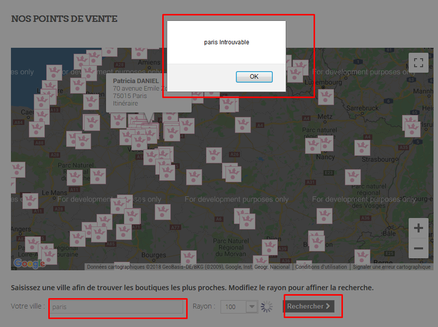 doekia Posted December 20, 2018 Share Posted December 20, 2018 Essaie Paris, FR si cela fonctionne, c'est un bug du thème qui ne fourni pas le "régional" Tu t'ai bien retenu de nous donner ta version exacte, comme ça c'est tellement plus simple de t'aider. Vérifie également que ta clé google api map est authorisé pour l'ensemble des fonction (donc le géolocalisateur) Link to comment Share on other sites More sharing options...