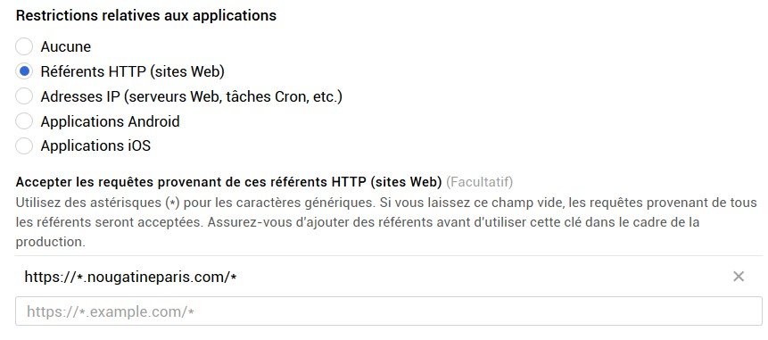 cedben Posted December 21, 2018 Author Share Posted December 21, 2018 Bonjour, Paris, FR ne fonctionne pas Désolé c'est un oubli dénué de préméditation : 1.6.0.8 (tu disais ça pour 1.7 ? ) Je n'ai de restriction que pour les http (pj)... C'est good ? Sinon j'ai : - activé la géolocalisation dans le module, et uploadé le fichier GeoLiteCity.dat dans www/tools/geoip - ajouté dans header.tpl : <script type="text/javascript" src="http://maps.google.com/maps/api/js?sensor=true®ion=FR&key=AIzaSyARZb85lPPgBbCildQJfsy1Xy3eTIqLRhk"></script> Mais ça ne marche toujours pas 😕 J'ai manqué quelque chose ? Merci d'avance, Link to comment Share on other sites More sharing options...