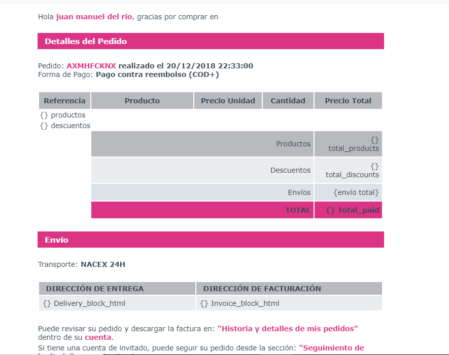 salud marco Posted December 20, 2018 Share Posted December 20, 2018 (edited) buenas tengo un error en los mensajes que le llegan al cliente a la hora de realizar un pedido, dejo una captura para que lo vean, como se dice una imagen vale mas que mil palabras a ver si pueden decirme como corregirlo ya que intente varias formas y nada la versión que tengo de prestashop es 1.6.1.18 también cambie la carpeta mails completa y sigue el mismo error un saludo Edited December 27, 2018 by salud marco (see edit history) Link to comment Share on other sites More sharing options...