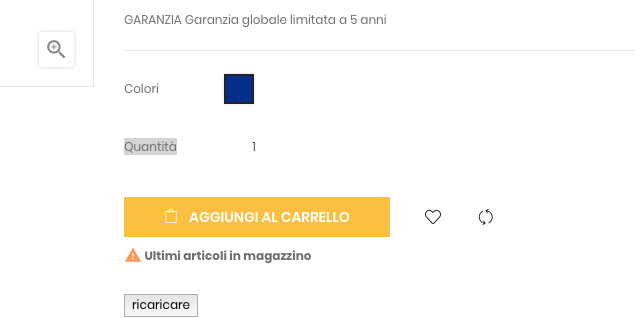 mario Posted December 22, 2018 Share Posted December 22, 2018 (edited) Ciao a tutti, ho un problema che non ho risolto su: https://puglisishop.comIn alcuni prodotti, al pulsante aggiungi-carrello non è più un pulsante e non mi piace clic sul pulsante mi reindirizza al carrello tu vuoi. Ho provato un prezzo prova cambiando la classe cooke con ma non penso che questo sia il problema In alcuni prodotti, in cui sono presenti i pulsanti, se faccio clic sull'ispezione, vedo questo codice: può guardare l'immagine1 Questo è un esempio: https://puglisishop.com/it/trolley-medio/548-1651-samsonite-linea-scure-trolley-medio-rigido-10u001.html#/211-colori -blu scuro Se invece si tratta di un altro, https://puglisishop.com/it/trolley-cabina-4-ruote/549-1652-samsonite-linea-scure-trolley-cabina-rigido- 10u003.html # / 211-colori-dark_blue e molti altri, facendo clic su controlla all'altezza della quantità che ho questo codice: può guardare l'immagine2 che è totalmente diverso e quando clicco non aggiunge nulla e mi reindirizza al carrello vuoto! Ho provato un problema con i moduli, senza problemi e con un problema e con un problema. Cosa può essere causato da? I prodotti nel back-end sono configurati allo stesso modo, non c'è nulla di diverso. Non capisco perché in alcuni prodotti non generi l'html e in altri lo fa. Grazie a chi ha la pazienza di aiutarmi Piero SOLVED I disactivate the module ps_viewproduct! Edited December 22, 2018 by mario (see edit history) Link to comment Share on other sites More sharing options...