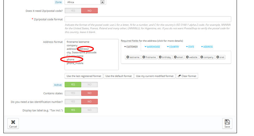 Delete address2 and phone in the left frame