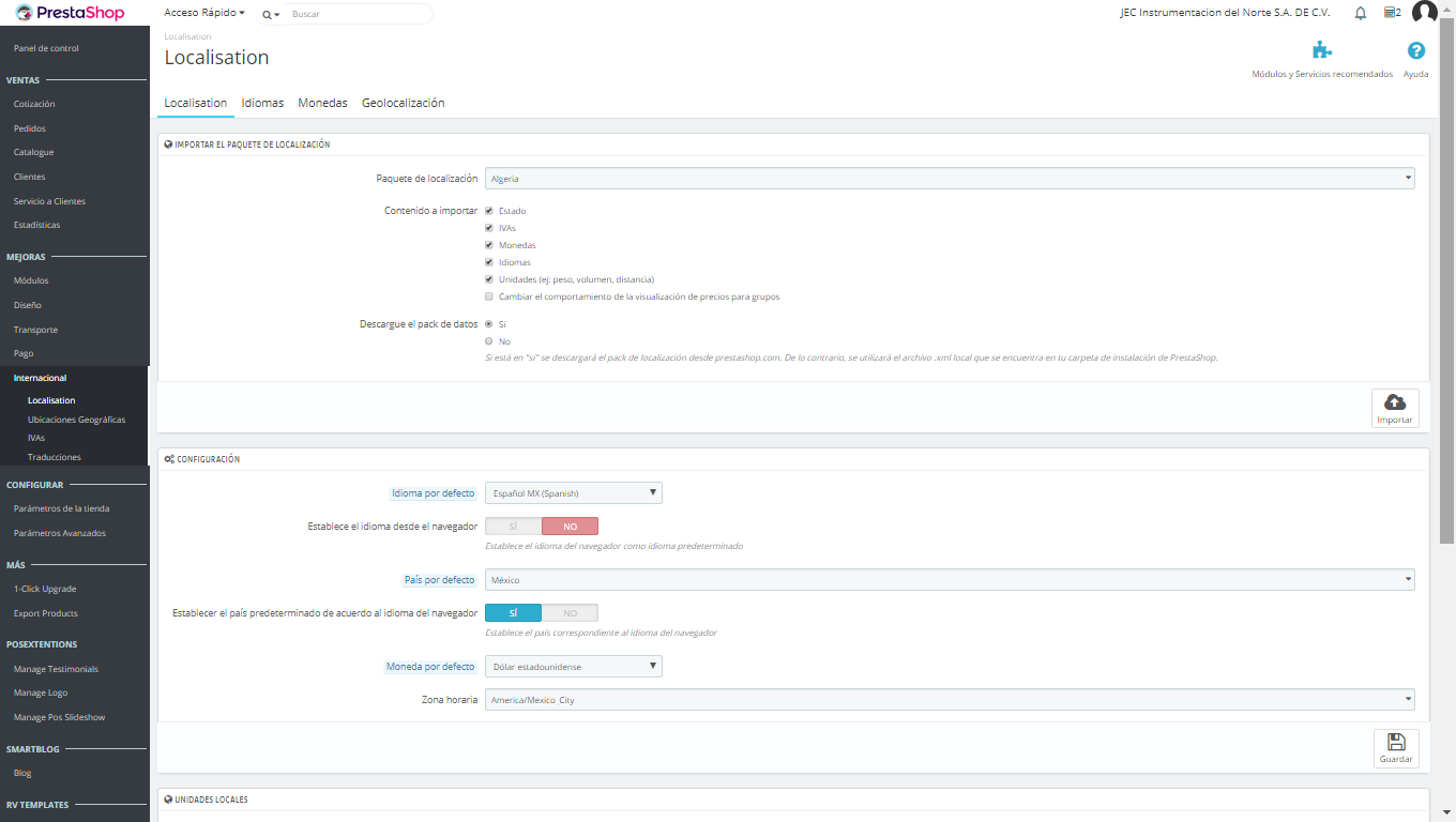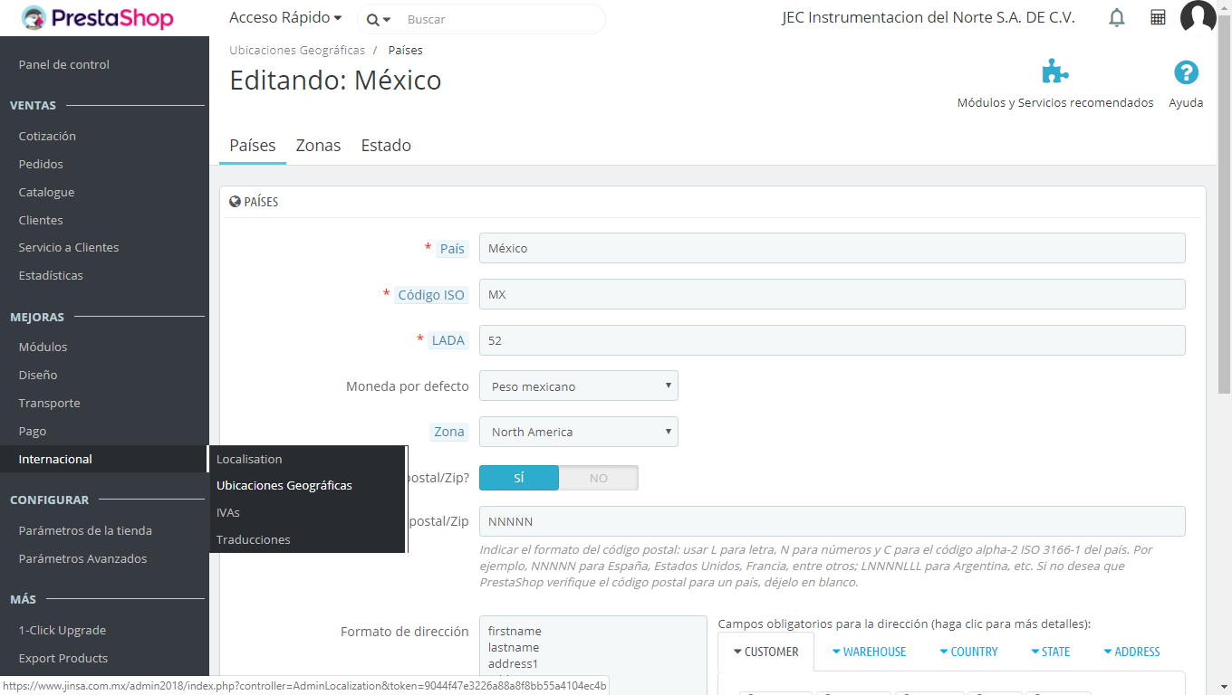 Choose the country (activated) --> edit