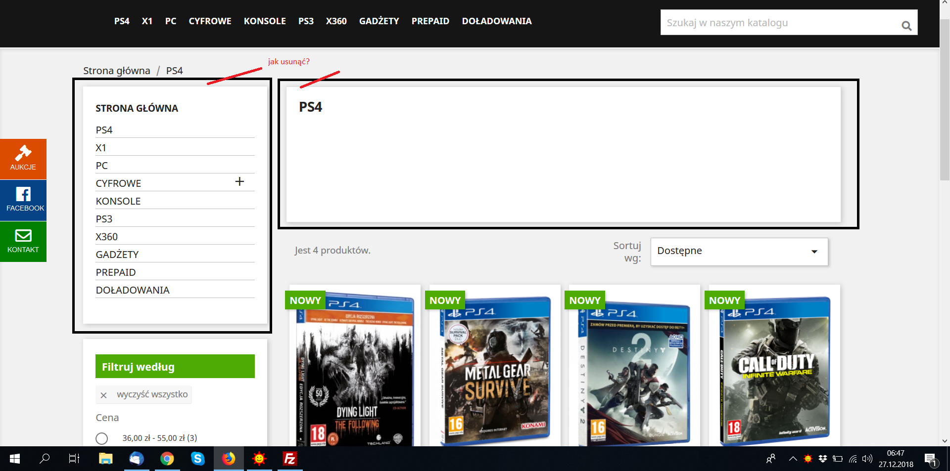 Chciałbym usunąć blok po lewej z kategoriami do wyboru i blok z nazwą kategorii, opisem i zdjęciem.