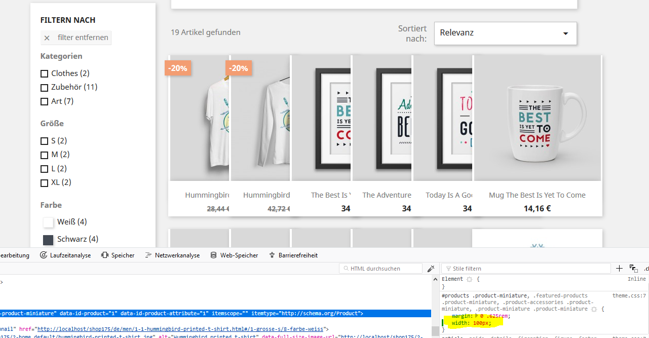 JBW Posted December 30, 2018 Share Posted December 30, 2018 Wenn du die Größe der Artikel anpasst, dann passen automatisch mehr Artikel in eine Reihe. Allerdings müsstet du dafür mehrere Elemente und die Thumbnails der Produkte anpassen. Hier mal beispielhaft nur die Breite der übergeordneten Box angepasst: Link to comment Share on other sites More sharing options...