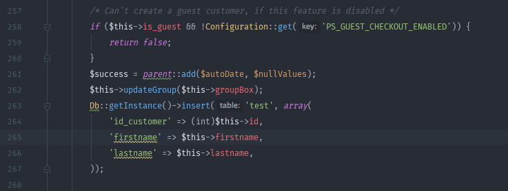 Presta Bucket Posted December 29, 2018 Share Posted December 29, 2018 Hello, You could try to run the sql in add() function. About the variables: customer_id : $this->id, firstname: $this->firstname, lastname: $this->lastname, email: $this->email, about the password, you can get it with $this->passwd. And before the insert you can assign to the password, the hashed value. In customer.php line ~401 you will see the $crypto variable, that is called to hash the password entered, you can use that example. Link to comment Share on other sites More sharing options...
