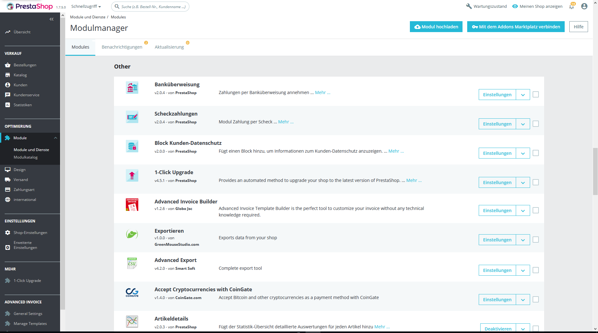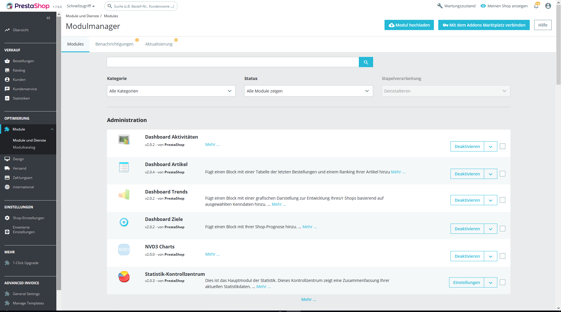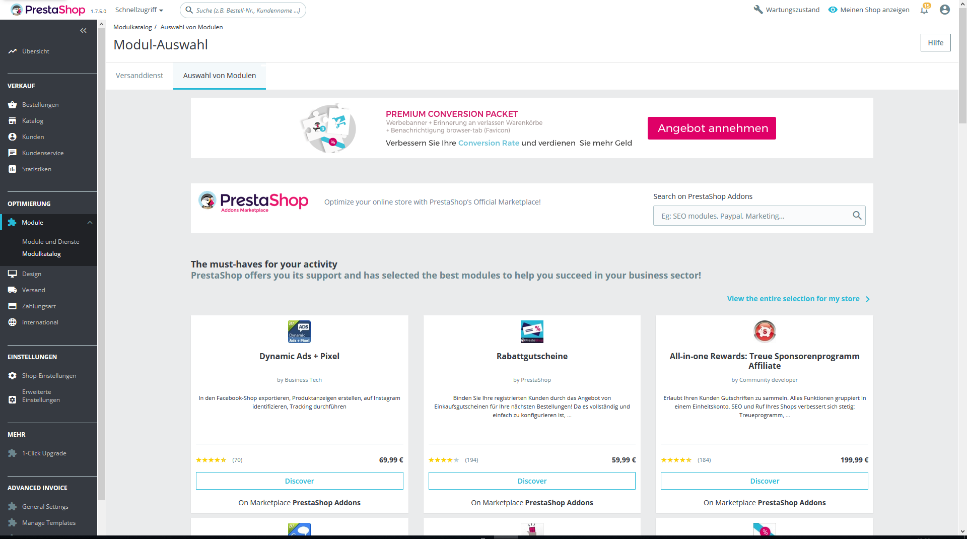 Anscheinend tatsächlich das Modul auch im PS 1.7.5.0 da ist: