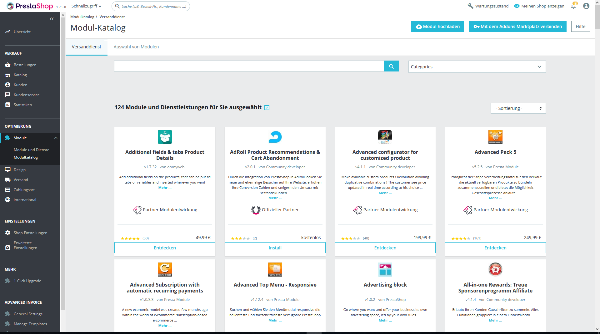 Mich würde ja viel mehr interessieren, was sich hinter dem linken Menupunkt "Modulkatalog" verbirgt, den gab es unter 1.7.4.2 nämlich noch nicht.