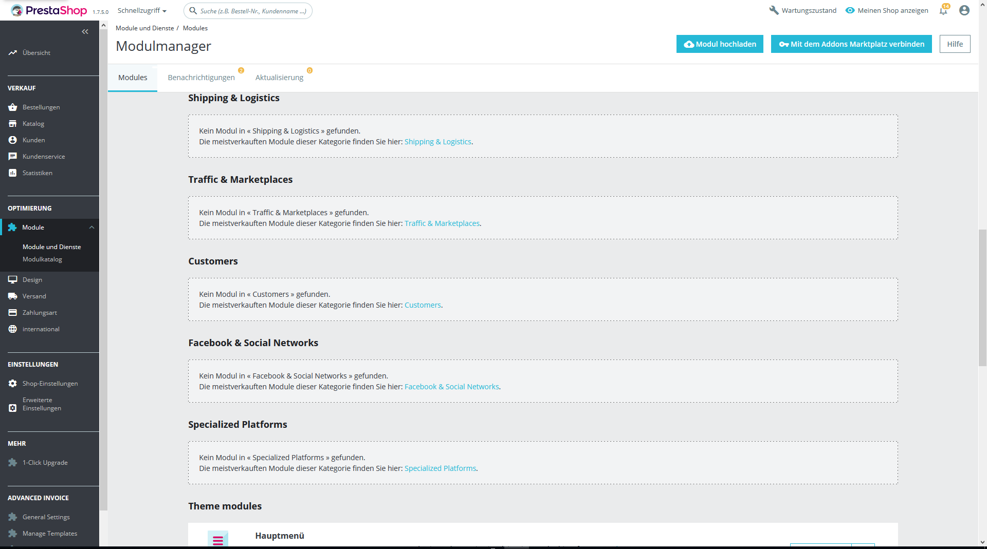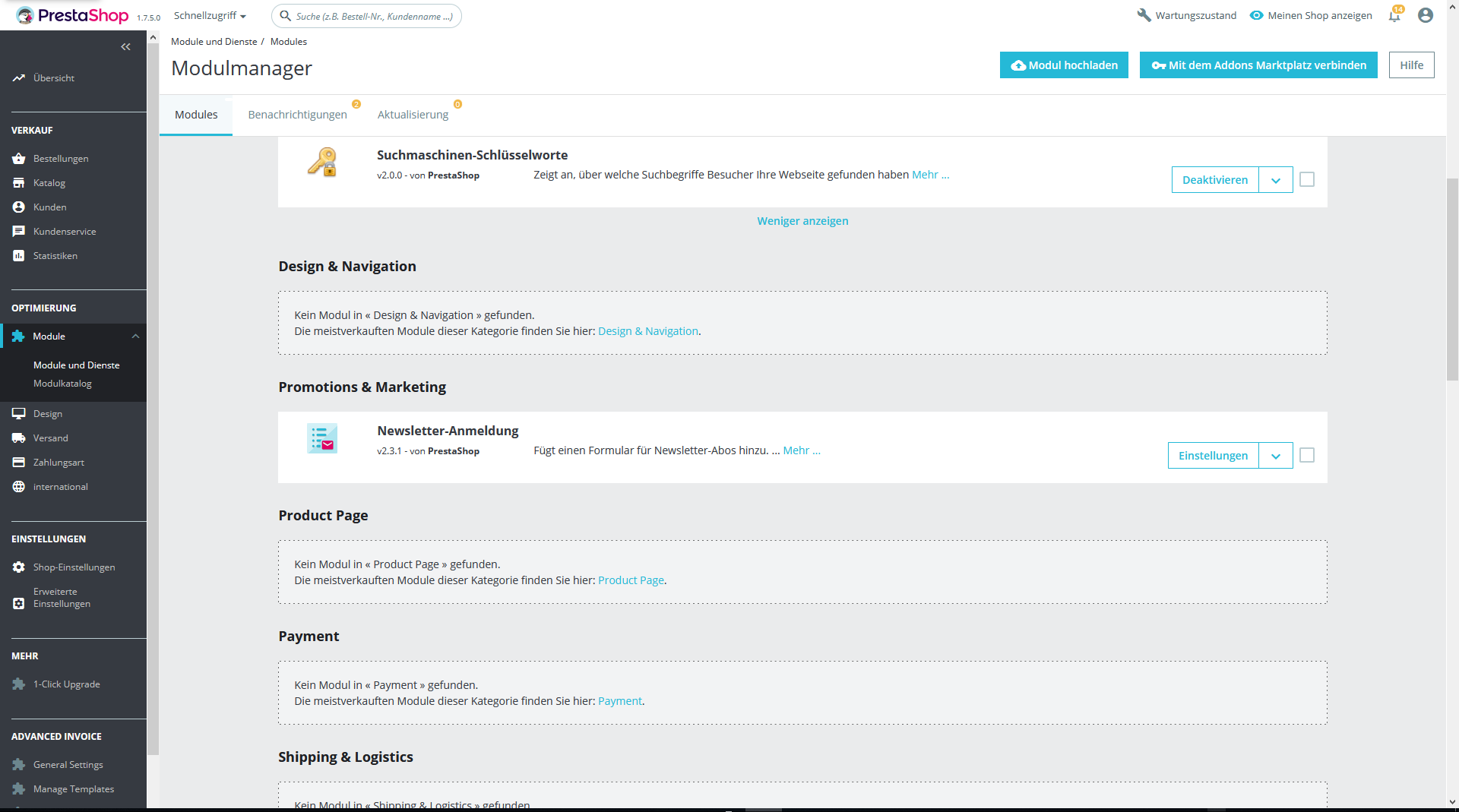 Das Problem ist, daß das Backoffice von PS 1.7.5.0 gar nicht das Module in der Moduleliste zeigt