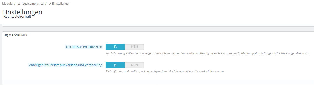 Leider finde ich niergendwo das Advance EU Complience Module (Rechtssicherheit).