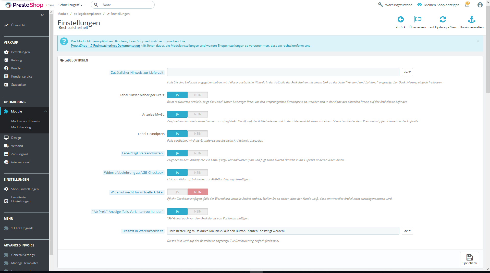 Gibt es noch das Advance EU Complience Module für PS 1.7.5.0?