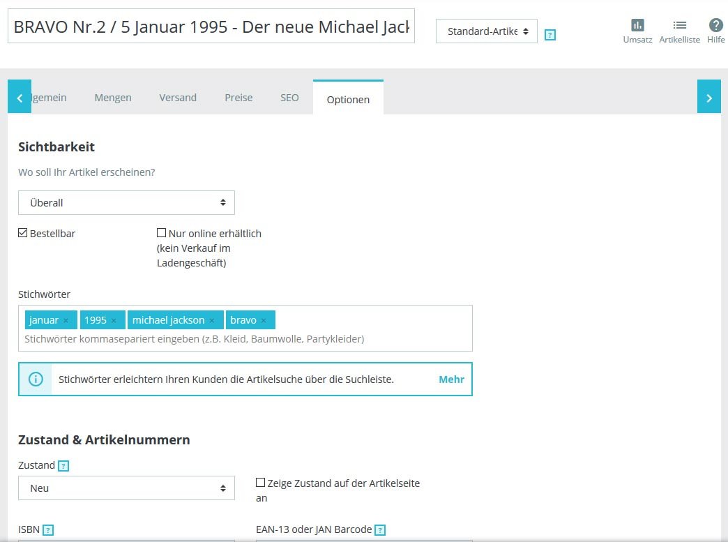 Die Stichwörter habe ich erst seit ca. 2 Monaten im Shop, davor hatte ich diese garnicht angeben. Bis mir aufgefallen ist, dass wenn ich Bravo 1995 suche, nur einen Teil angezeigt wird, deswegen habe ich die Stichwörter angegeben. Demnach lief schon vor den Schlagwörter die Suche nicht richtig.