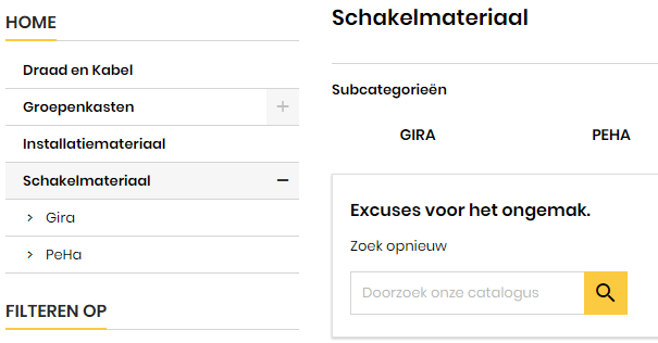 JoostBosch Posted January 14, 2019 Share Posted January 14, 2019 Hallo, Ik heb een menu met een hoofd categorie (die leeg is) en daaronder allemaal subcategorieën. Als ik nu op de hoofdcategorie klik dan laad de pagina en krijg ik in beeld: Excuses voor het ongemak. Zoek opnieuw (Met daaronder een tekstvak "Doorzoek onze catalogus") Zie attachment. Hoe kan ik dit uitzetten of verwijderen uit de code? Alvast bedankt. Joost Link to comment Share on other sites More sharing options...