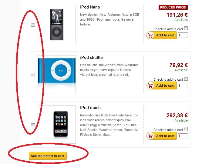 Todor Inchovski Posted January 18, 2019 Author Share Posted January 18, 2019 1 minute ago, tdsoft said: Prestashop System supported both mode: Grid & List in category page see: https://postimg.cc/BjVtFvcL Would you like set List as Default mode when open a category page, yes? I have already set list as default mode on my shop category page. What I am trying to do is add the buttons that I have encircled in the picture below. Their purpose is: I check two or more products and then click the button at the bottom "Add selected to cart" and they are added to the cart all at once. Link to comment Share on other sites More sharing options...