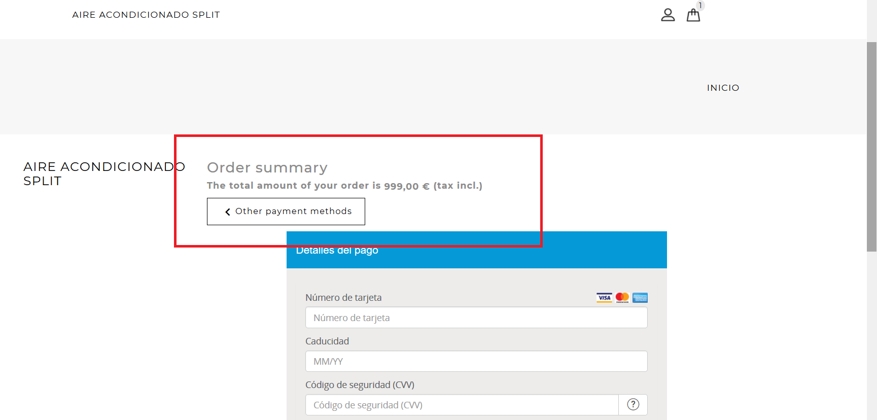 AlexTG Posted January 23, 2019 Share Posted January 23, 2019 (edited) Buenos días, En el último paso de la pasarela de pago, donde hay que introducir la tarjeta para realizar el pago, me sale un texto en inglés que no ha sido traducido y no se donde encontrarlo. No lo encuentro en ninguna de las opciones de traducciones. He leido que al parecer existe un front-office, pero esa opcion ni me sale en el desplegable y solo lo puedo acceder modificando back por front en el link del backoffice, pero allí tampoco se encuentra dicho texto. Alguien sabe como solucionarlo? EDIT: Solucionado. Era una simple traduccion del modulo instalado que detecté la primera vez que lo busqué. Edited January 28, 2019 by AlexTG (see edit history) Link to comment Share on other sites More sharing options...