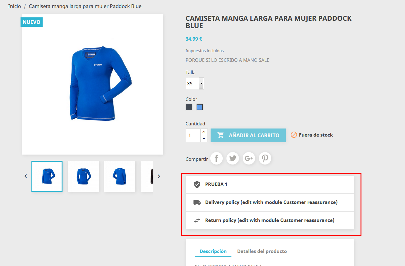 tonyno92 Posted January 26, 2019 Share Posted January 26, 2019 Hola, estoy poniéndome al día sobre la configuracióin de Prestashop, hay cosas que controlo pero otras no tanto, he modificado el texto de este campo, pero no sé donde volver a encontrarlo para corregirlo, el escrito como PRUEBA 1 y los de debajo. No tengo ni idea de cómo llegué hasta allí. Si alguien puediera arrojarme un poco de luz estaría muy agradecido. Un saludo. Link to comment Share on other sites More sharing options...