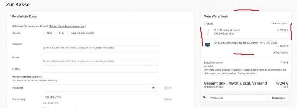 Sofern Text erfasst, werden diese im Warenkorb vor dem Bestellen angezeigt und wenn nötig auch auf der Rechnung.