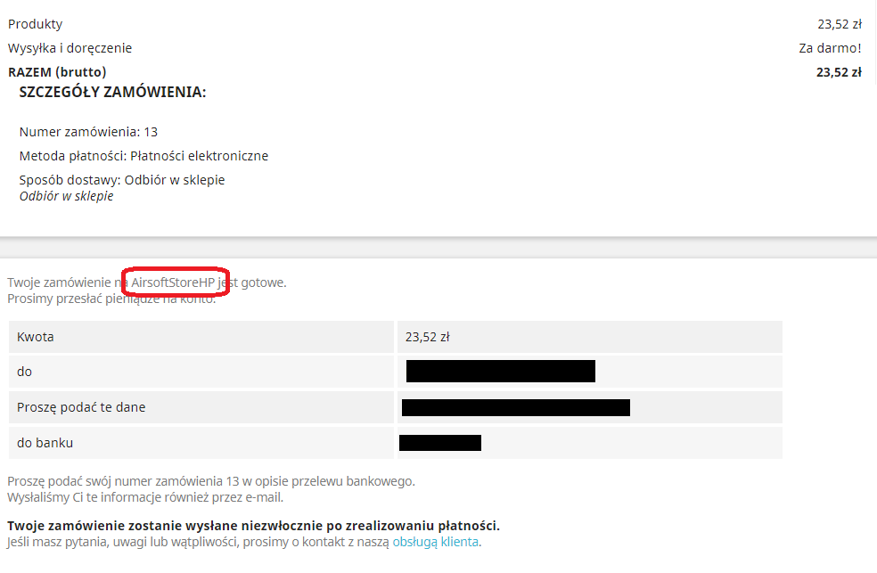 mam problem z wyświetlaniem błędnej nazwy sklepu po złożeniu zamówienia.