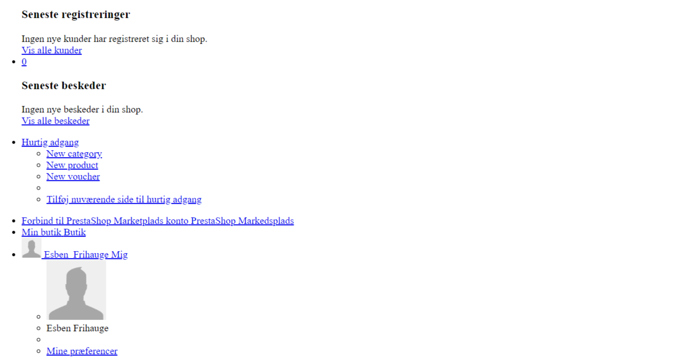 frihauge Posted February 4, 2019 Share Posted February 4, 2019 Min backend på prestashop har ingen thema, ser mystisk ud kun tekst, se neden under, Frontend ser fin ud, hvordan kan det være ? Jeg har slået dev mode til men kan ikke se nogen fejl Nogen der kan komme med et godst råd`? Mvh Esben Link to comment Share on other sites More sharing options...