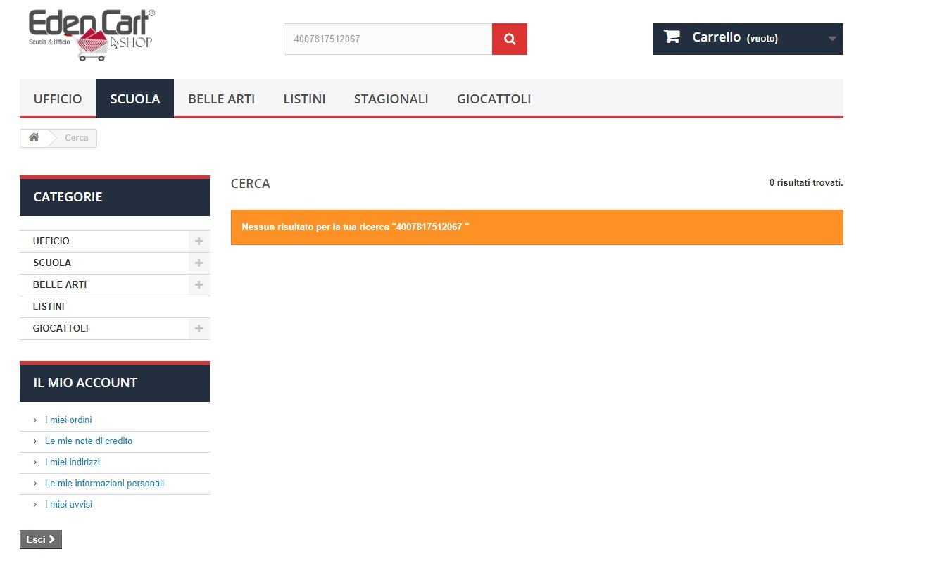 edenc Posted February 5, 2019 Share Posted February 5, 2019 Salve a tutti, Sto riscontrando un problema nella ricerca degli articoli tramite descrizione breve articolo: Premetto che ho impostato gli articoli in questo modo poichè ho un modulo di sincronizzazione tra il mio gestionale e prestashop, avendo più di 30.000 articoli. Ogni articolo, avendo 2 o più codici a barre differenti, ed essendoci un solo campo a disposizione per il codice a barre in prestashop, ho pensato di inserirli in descrizione web direttamente dal gestionale così da trovarlo direttamente sincronizzato su prestashop. Vorrei sapere come mai provando a cercare l'articolo con il primo codice a barre presente in descrizione non ho nessun risultato e invece con il secondo si. Per risolvere ho pensato che si potrebbe inserire uno dei due codici a barre all'interno del campo codice ean di prestashop e lasciare l'altro in descrizione breve, però vorrei evitarlo perchè questo vorrebbe dire fare un operazione manuale per ogni articolo e quindi mi comporterebbe tantissimo tempo Link to comment Share on other sites More sharing options...