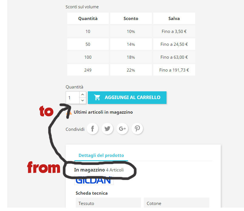 stefano7 Posted February 8, 2019 Share Posted February 8, 2019 ciao a tutti qualcuno sa come fare a spostare la disponibilità del prodotto dai dettagli in un altro posto. Nel mio caso sotto l'aggiunta al carrello? Ho provato a lavorare nei file product-add-to-cart.tpl nel file product.tpl, però non si aggiorna il messaggio della disponibilità dinamicamente nel caso seleziono un attributo del prodotto Link to comment Share on other sites More sharing options...