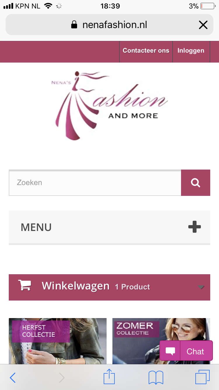Nenafashion Posted February 8, 2019 Author Share Posted February 8, 2019 56 minutes ago, Nenafashion said: Beste Forum leden, Ik heb even een probleem met mijn webshop www.nenafashion.nl, het probleem zit hem in de homepagina, als ik op het plusje naast het menu klik, moet ik normaal gesproken alle categorieën te zien krijgen, maar het menu wordt niet uitgeklapt. Ik heb van alles geprobeerd en nagekeken, waar dat dit aan kan liggen. Zou iemand weten, wat het probleem geeft ? Misschien iets in de aanpassingen van de instellingen? Link to comment Share on other sites More sharing options...