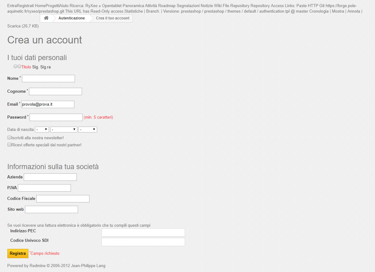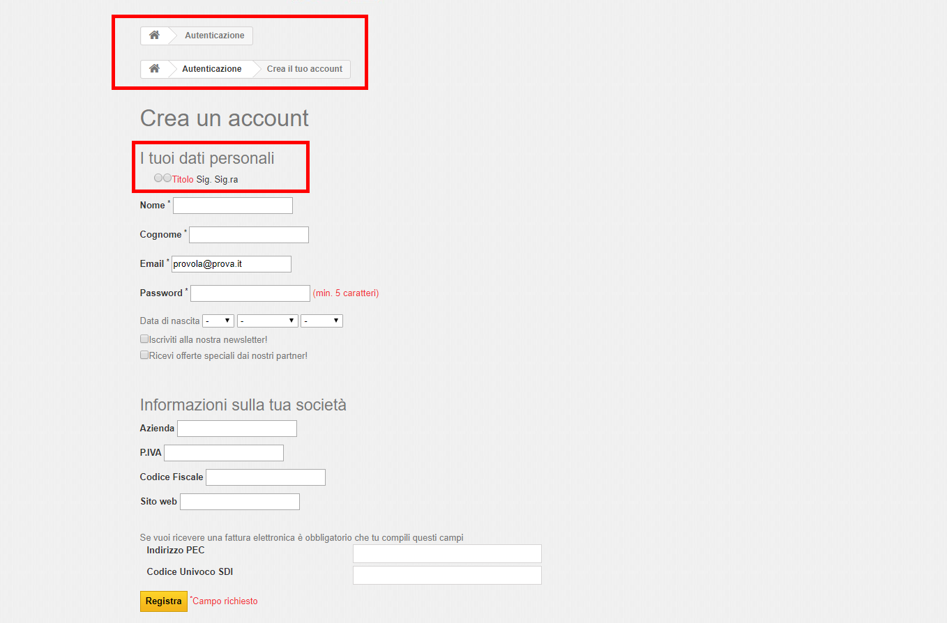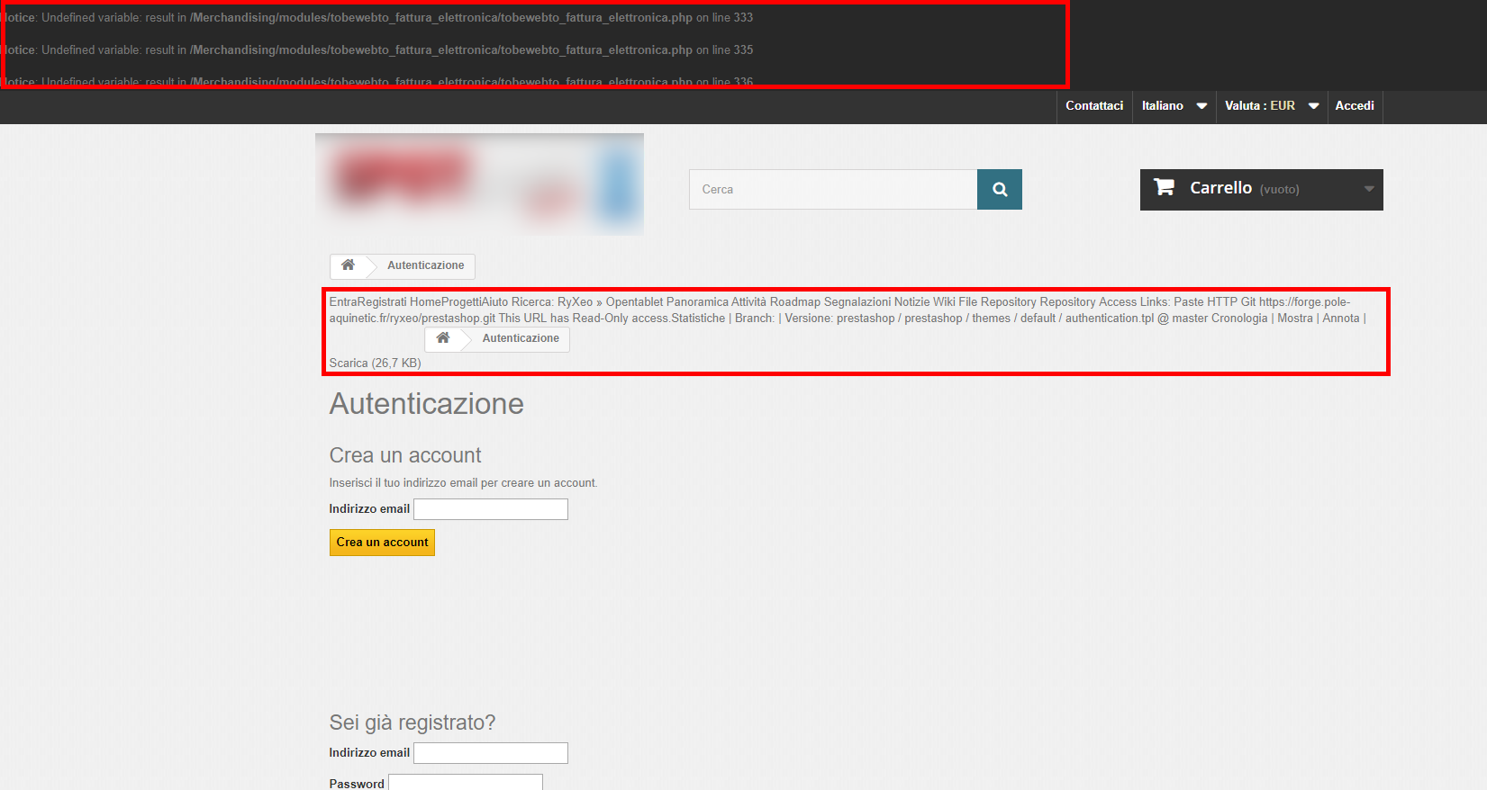 TheVanPeP Posted February 12, 2019 Share Posted February 12, 2019 Buongiorno a Tutti mi presento sono Giuseppe, so usando la versione di Prestashop 1.6.1.1 ( ho spulciato ovunque nel forum per cercare di capire e risolvere il mio problema ) praticamente ho la pagina LOGIN dell'utente sfasata, come potete vedere in calce. Per la fatturazione elettronica ho cancellato il modulo, ma niente. Mentre il secondo problema ho agito sul file authentication.tpl cancellando quel ''EntraRegistrati HomeProgetti...etc..'' ma nulla. Qualcuno saprebbe indicarmi dove devo mettere le mani? Ringrazio a tutti per l'aiuto e per avermi dedicato un minuto a leggere questo post. Link to comment Share on other sites More sharing options...