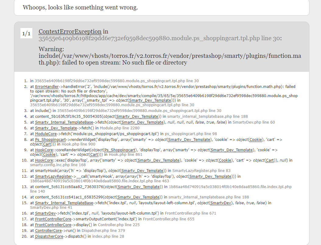cycy Posted February 13, 2019 Share Posted February 13, 2019 Bonjour, j'ai mis un de nos sites en mode debug et c'est une catastrophe pure et simple niveau erreur. J'essaye de résoudre ceci car nous avons un autre gros soucis, sur ce site, une mise à jour des données se fait la nuit, hors chaque matin nous avons un soucis de prix, un soucis avec des marques qui disparaissent, une lenteur incroyable du site .... Quelqu'un saurait m'en dire plus concernant cette erreur ??? j'ai voulu désactiver la fonction qui pose problème mais là je n'ai plus eu de site. J'ai testé également de virer les fonctions surchargées et je me suis retrouvée avec une jolie erreur 404. sans pouvoir passer par le mode debug je me retrouve bloquée pour l'instant alors vraiment si quelqu'un pouvait m'en dire plus ce serait chouette. je vois bien que le tableau retourne une fonction vide ... Pour l'instant je fais des tests sur certains modules ... Je ne sais pas si c'est une tâche automatique lancée sur le serveur qui est à la base de ce problème ou si c'est un conflit entre modules prestashop.... Merci beaucoup à ceux ou celles qui sauront m'aider car là je tourne en rond Link to comment Share on other sites More sharing options...