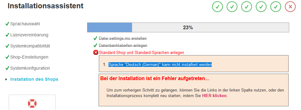steffran Posted February 15, 2019 Share Posted February 15, 2019 Hallo, ich versuche gerade einen neuen Prestashop zu installieren. Gehostet wird der Shop bei strato. Ich habe mich für die letzte 1.6.1.23 Version entschieden. Bei der Installation im letzten Schritt kommt leider folgende Fehlermeldung: Sprache "Deutsch (German)" kann nicht installiert werden Hab jetzt mal in Ordner translation nachgeschaut. Da ist eine englische und französiche Übersetzung drin. Hab mal versucht die Installation auf englisch zu machen. Funktioniert aber auch nicht. Kennt einer von euch das Problem? Viele Grüße Stefan Link to comment Share on other sites More sharing options...