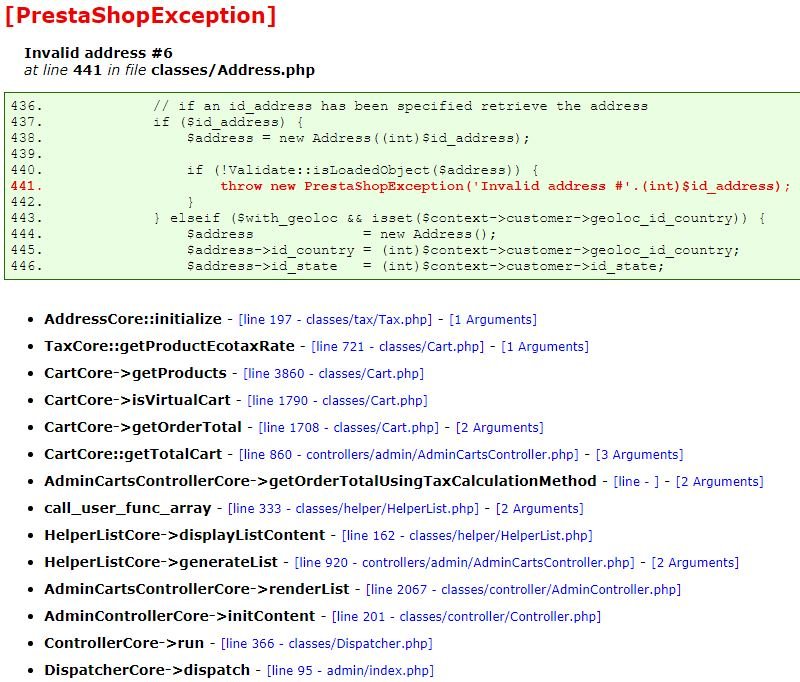 joseantgv Posted February 15, 2019 Share Posted February 15, 2019 Some cart is linked with an address that doesn't exist. Which PS version are you running? Link to comment Share on other sites More sharing options...