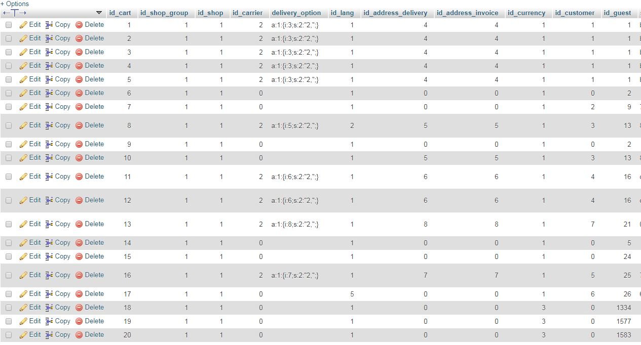 Mac Group Posted February 15, 2019 Author Share Posted February 15, 2019 Hello, there isnt not a ps_cart table. There are a few different ps_cart options, please see attached photos Link to comment Share on other sites More sharing options...