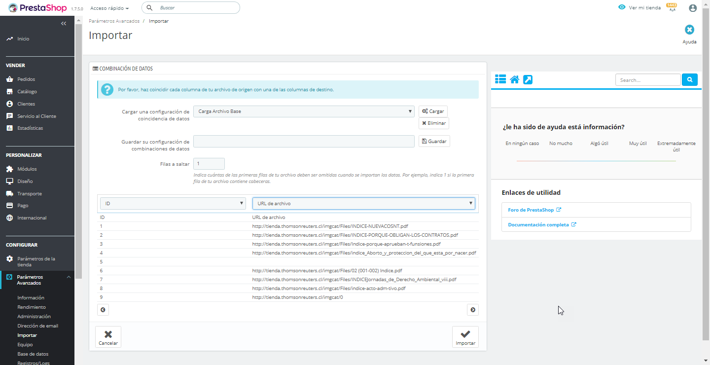 I was importing a csv file for advanzed parameter/import. my csv have a two column. the firts is my ID and second column is my URL of file.