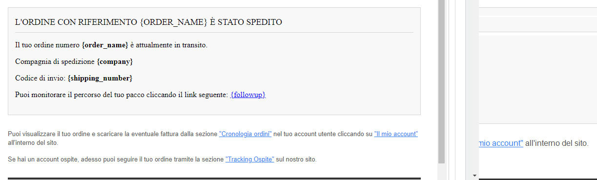 ho configurato la mail per inviare al cliente il link per la tracciabilità della spedizione,
