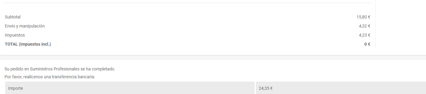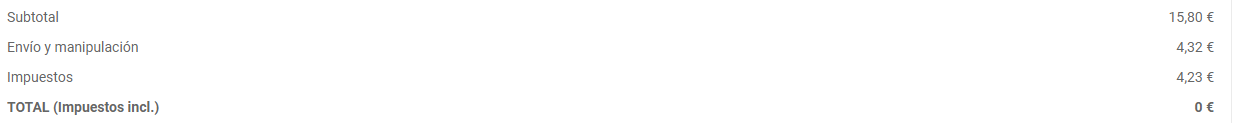 joane Posted April 21, 2020 Author Share Posted April 21, 2020 10 hours ago, fernandovegag said: Hola tengo un problema con esto. Al principio lo hace bien pero al final del todo me sale el total 0 €, y después en la línea de abajo sale bien Hola , fijate en que en la vista en dónde te aparece 0 , tenga : {$currency.iso_code}{$currency.sign}{$cart.totals.total.amount+$cart.subtotals.tax.amount} que es la suma que te aparece el importe . Saludos Link to comment Share on other sites More sharing options...