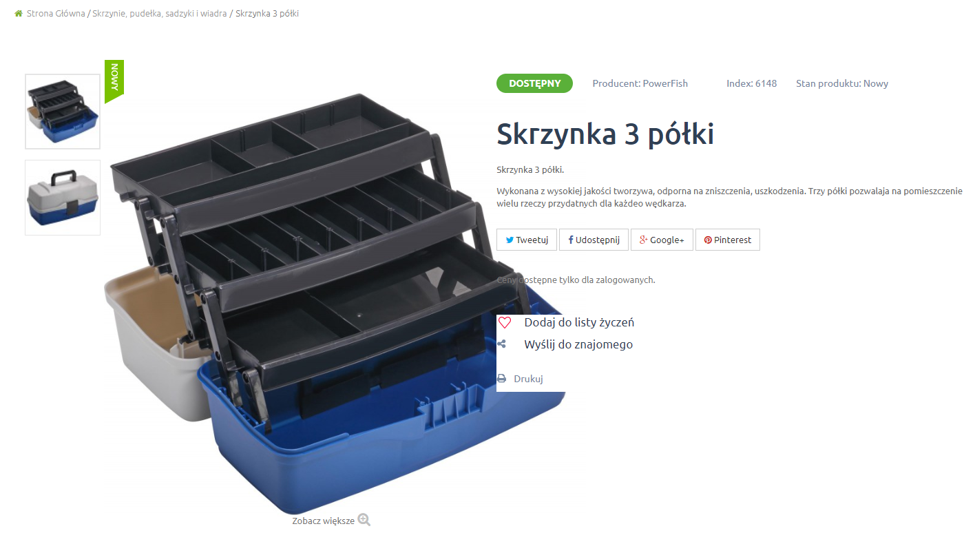 0 MichalMB Posted February 24, 2019 Author Share Posted February 24, 2019 Bezpośredni link do produktu: http://ewitafishing.pl/skrzynie-pudelka-sadzyki-i-wiadra/8233-skrzynka-2-polki.html?search_query=Powerfish&results=258 Link to comment Share on other sites More sharing options...