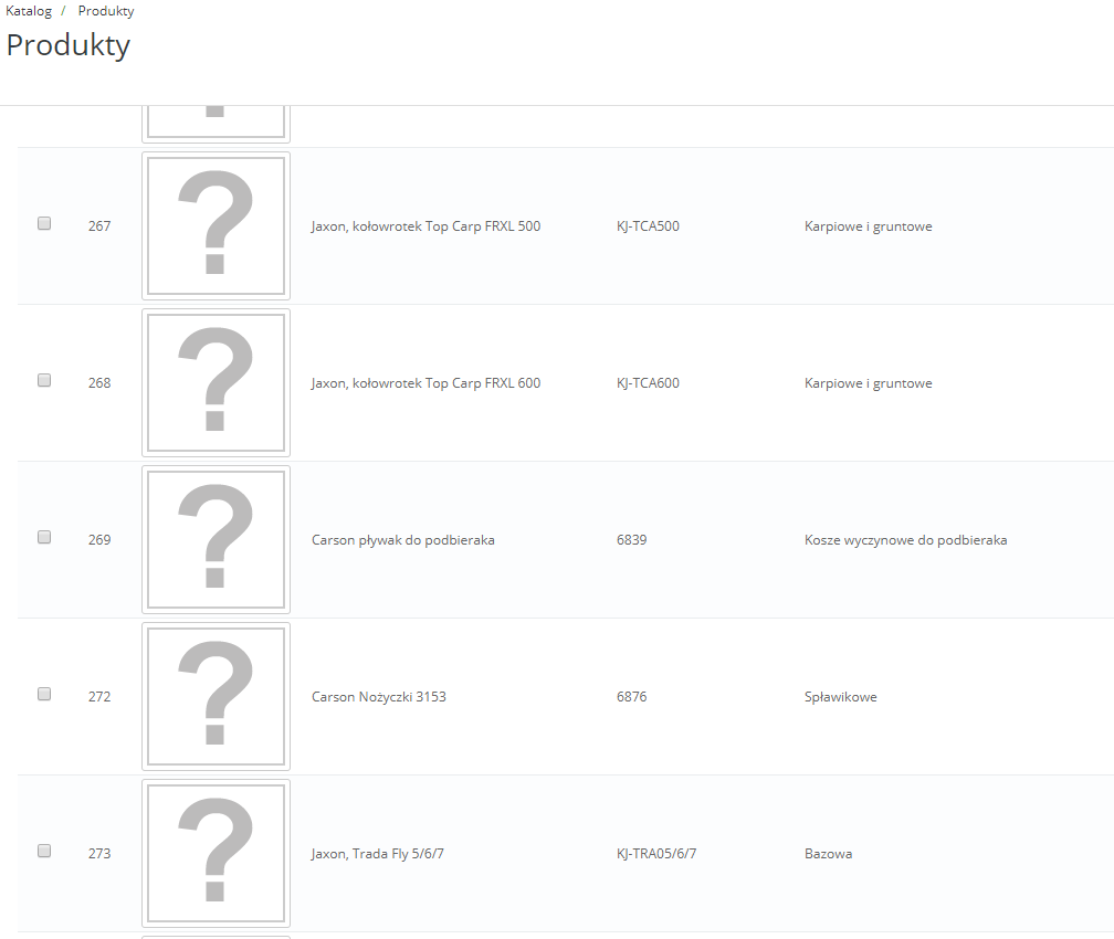 Pytajniki zamiast zdjęć na liście produktów od zaplecza