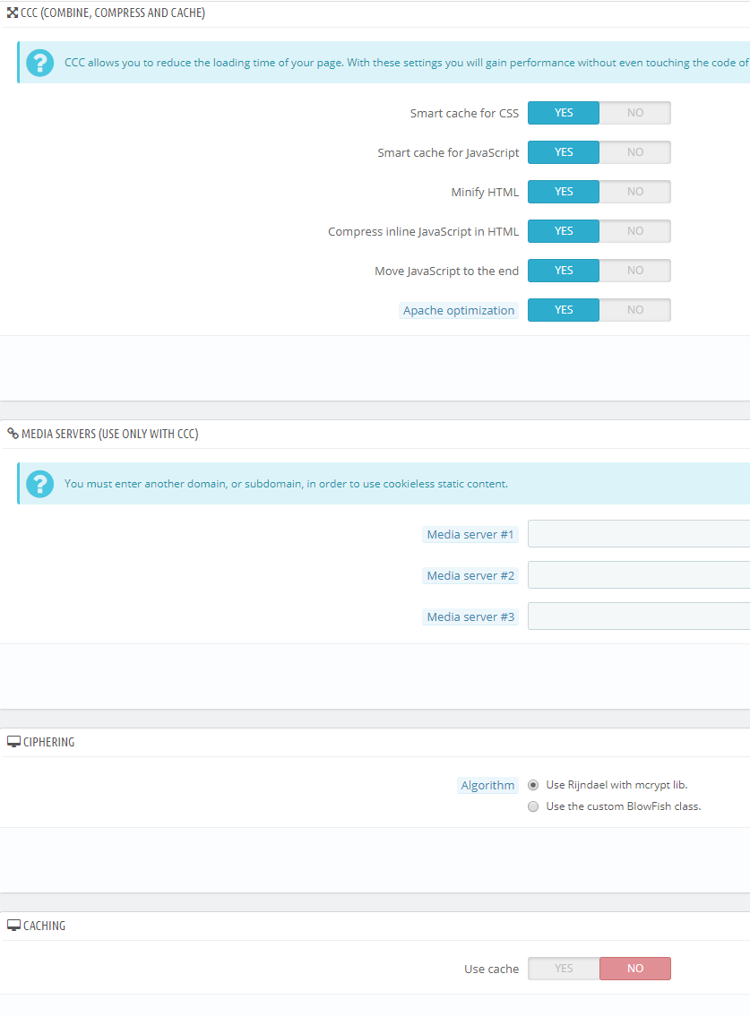 Bolączką jest ze pamięć podręczna w presta jest wyłączona ale stronka chodzi dość szybko.