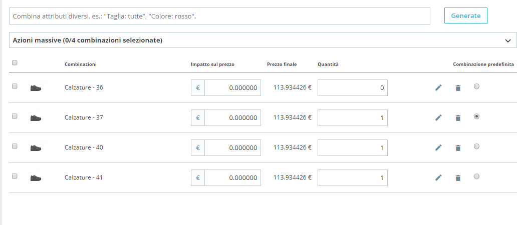 infoapp2u Posted February 27, 2019 Share Posted February 27, 2019 Salve a tutti ho provveduto ad aggiornare dalla versione 1.7.2.2 alla 1.7.5.1 Ho effettuato un ordine simulato per un prodotto con combinazioni (ad esempio la misura in caso di calzatura). Il prodotto aveva la sua combinazione predefinita e la sua quantità per poter essere ordinato ma dopo aver effettuato l 'ordine la quantità è diminuita passando correttamente a zero mentre la combinazione predefinita è rimasta invariata anziché spostarsi sulla successiva utile. Ricordo che versione precedente da me utilizzata (1.7.2.2) di non aver riscontrato tale anomalia. Se avete considerazioni in merito o suggerimenti ben vengano. Grazie a tutti. Link to comment Share on other sites More sharing options...