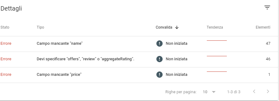 Chiaramente gli elementi saranno tutti ma la scansione di google si è arrestata ai primi errori