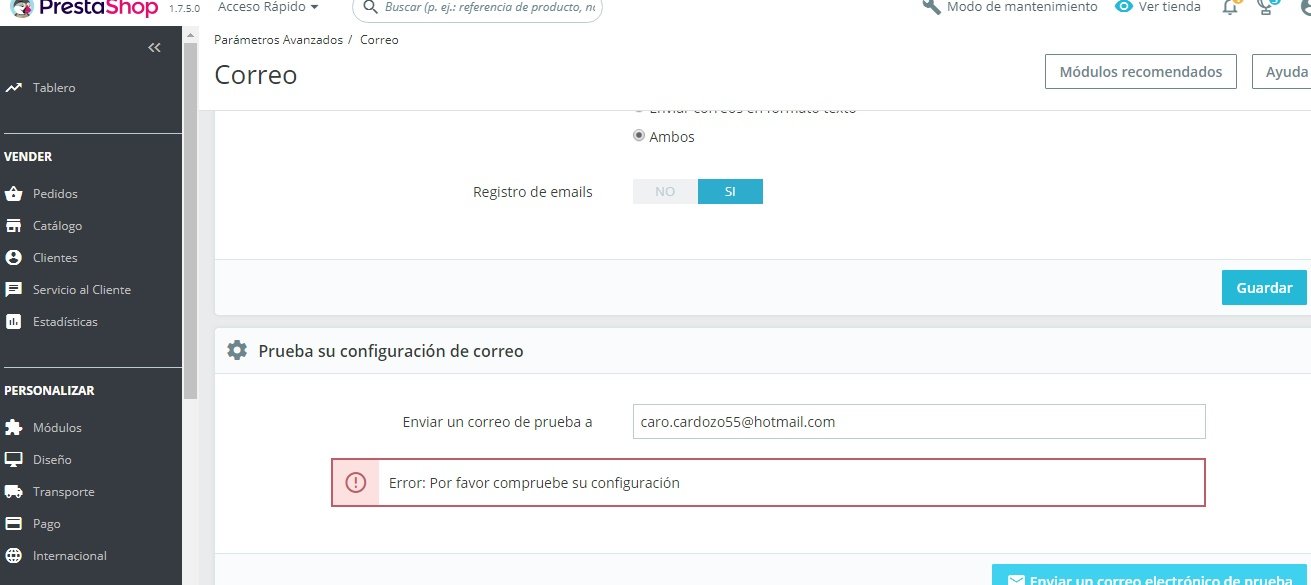 Jenny Posted March 4, 2019 Share Posted March 4, 2019 Hola buenas tardes, Estoy configurando mi tienda prestashop 1.7.5 y en la sección Prueba de Configuración de Correo estoy intentando enviar un correo de prueba, pero me sale el siguiente Error: Por favor compruebe su configuración. ( Adjunto Imagen) Alguien me puede por favor colaborar con este tema, Donde debo configurarlo? Muchas gracias. Jenny Link to comment Share on other sites More sharing options...