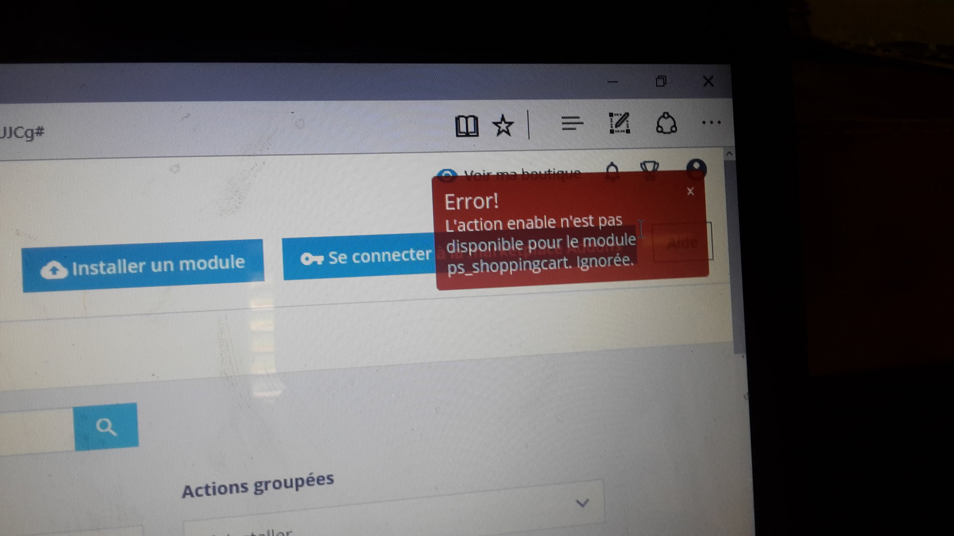 DabrOso Posted March 6, 2019 Share Posted March 6, 2019 Salut , j'arrive pas à activer les modules du thème par défaut. Quand je sélectionne pour activer voilà le message qui s'affiche en rouge : "error! L'action enable n'est pas disponible pour le module ps_shoppingcart . Ignorée. " J'ai besoin de votre aide Link to comment Share on other sites More sharing options...