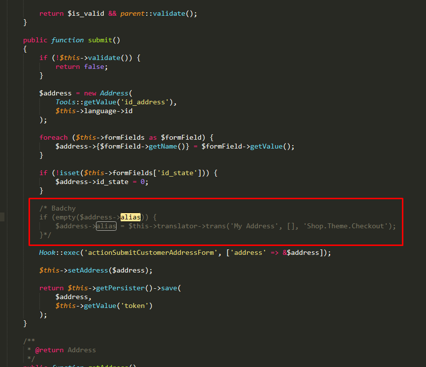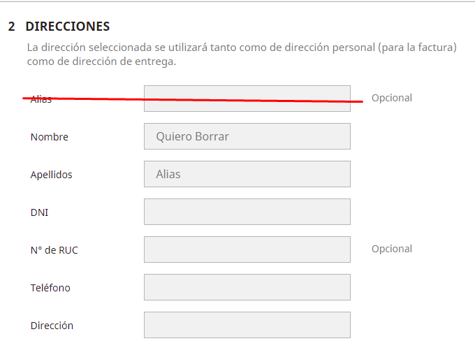 badchy Posted February 26, 2021 Share Posted February 26, 2021 Hola, yo quiero borrar el Alias, pero no puedo en Prestashop 1.7.7.1 Ya edite /classes/form/CustomerAddressForm.php y comenté cuando llaman al alias, pero no funciona. Me serviría de mucho la ayuda. Link to comment Share on other sites More sharing options...