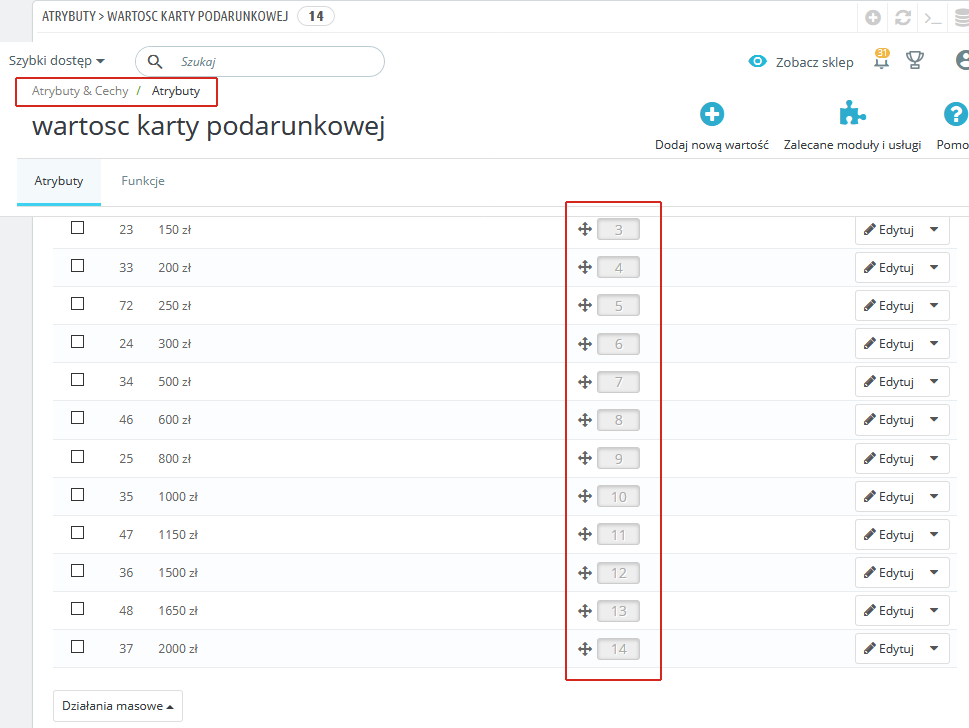 PS 1.7.5 sortowanie / kolejność wygenerowanych kombinacji produktu.