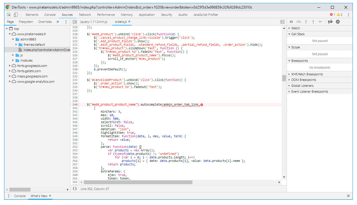 fabiok Posted March 12, 2019 Share Posted March 12, 2019 Utilizzo prestashop 1.6.1.7 su php 5.6.33. Da 2 giorni non riesco ad accedere ad alcuni ordini. La pagina di corrompe presentando un errore di javascript nel file order.js Uncaught ReferenceError: admin_order_tab_link is not defined La riga è la seguente $("#add_product_product_name").autocomplete(admin_order_tab_link, { minChars: 3, max: 10, width: 500, selectFirst: false, scroll: false, dataType: "js ................. .................... L'errore viene dato solo per alcuni ordini, altri li visualizzo correttamente. Ho provato a mettere delle alert in vari del file order.js, compreso in $(document).ready(function() {}, ma da li non passa nemmeno Qualcuno ha già avuto un problema simile ? Potrebbe essere la versione di php ? Oppure Jquery ? Grazie a chiunque abbia voglia di aiutarmi. Link to comment Share on other sites More sharing options...
