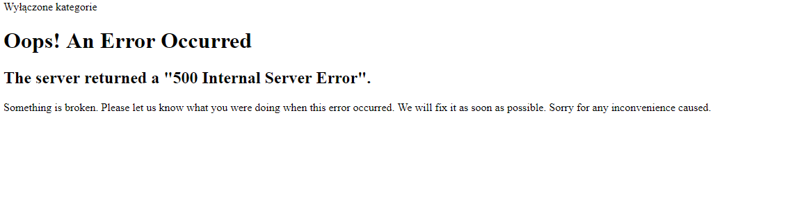 Witam, mam problem, otóż nie działają kategorię. Gdy kliknę w zakładkę "kategorię" w panelu administracyjnym, występuję błąd. Gdzie jest powód lub jak go rozwiązać?