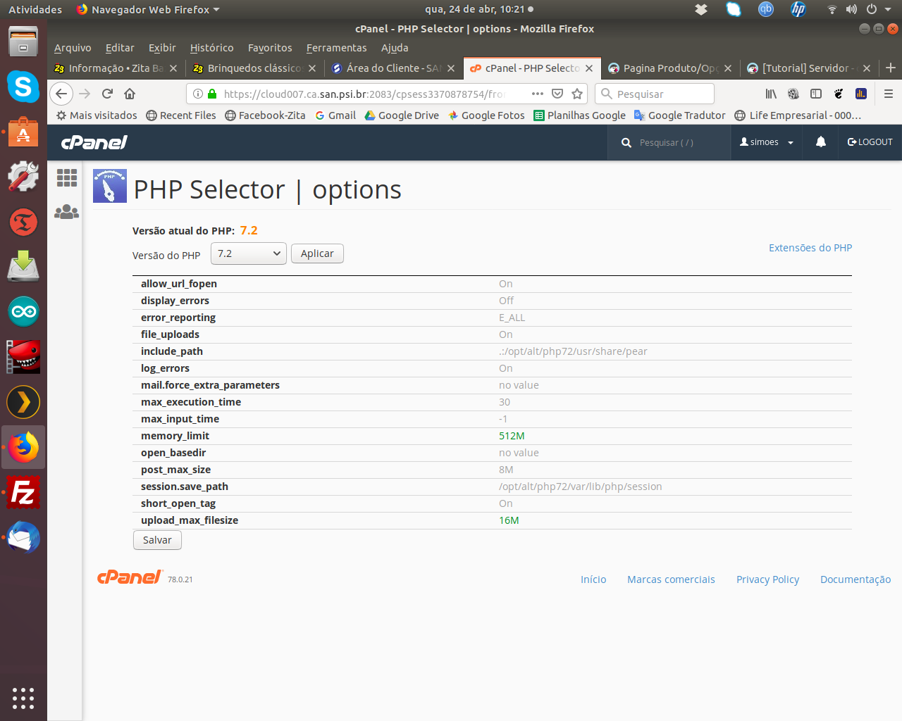 Simoes Posted April 24, 2019 Author Share Posted April 24, 2019 Olha, atualizei o PS para 7.5.1, o PHP está em 7.2.17 mas continua dando o mesmo problema! Estou enviando as configurações PHP do servidor, se puder dar uma conferida agradeço. Link to comment Share on other sites More sharing options...