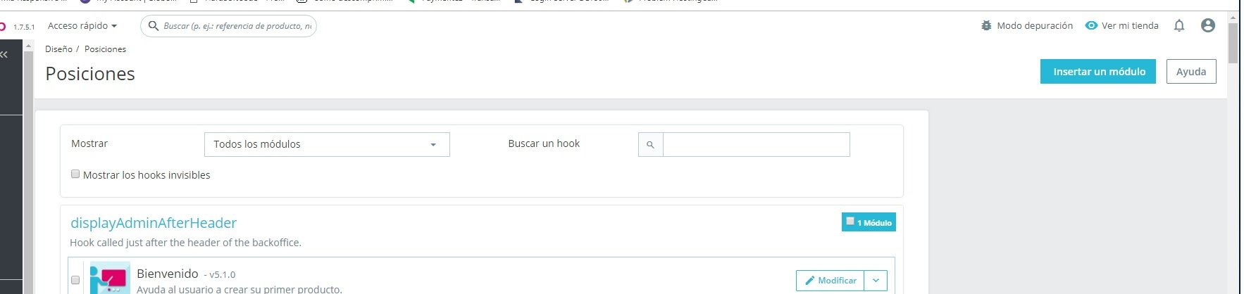 RicRey Posted March 18, 2019 Share Posted March 18, 2019 (edited) hola!, les escribo porque tengo un problema, actualicé a prestashop 1.7.5.1 desde 1.7.3.0 todo parece funcionar bien, menos algo medio raro, en el menú "Posiciones" para editar la posición de los módulos el boton que dice insertar modulo sale todo grandote mal... adjunto imagen, y si alguien me hecha una mano se lo agradezco. aclaro que la función del botón es normal, solo que sale ese diseño mal, "ya he borrado la cache del navegador, incluso use una laptop de un amigo para verificar si era mi navegador el que molesta pero el problema es el mismo. Edited March 25, 2019 by RicRey Caso Solucionado (see edit history) Link to comment Share on other sites More sharing options...