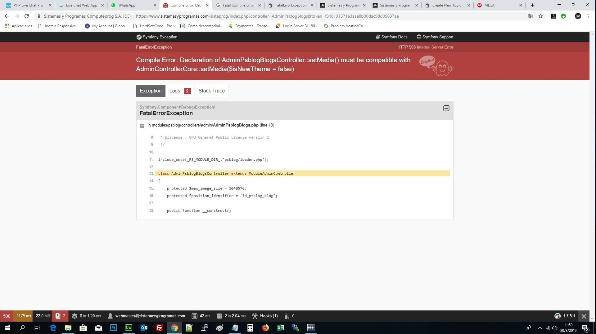 RicRey Posted March 21, 2019 Author Share Posted March 21, 2019 5 hours ago, burrots said: en psblog/controllers/admin/AdminPSblog..... Busca la funcion setMedia() y cambiala asi setMedia($isNewTheme = false) al hacer eso aparecen más errores, pero al quitar modo depuración ya funciona al parecer, voy hacer pruebas ojala todo funcione bien :S Link to comment Share on other sites More sharing options...