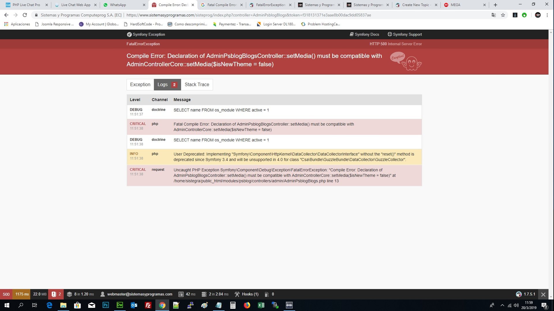 burrots Posted March 21, 2019 Share Posted March 21, 2019 7 hours ago, RicRey said: al hacer eso aparecen más errores, pero al quitar modo depuración ya funciona al parecer, voy hacer pruebas ojala todo funcione bien :S al hacer eso has kitado el error. lo q te sale con debug activados seran warnings, pr no errores, por eso al quitarlo funciona bien. Ese ere el error y has aplicado ok la solcuón que te dimos. Huele a q el modulo o theme q utilizes no este dl todo adaptado a la 1.7 Suerte Link to comment Share on other sites More sharing options...